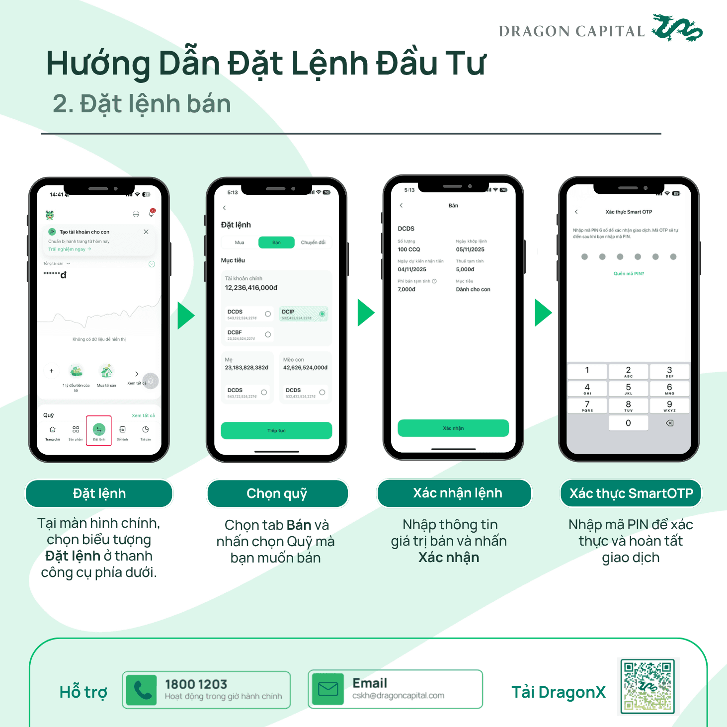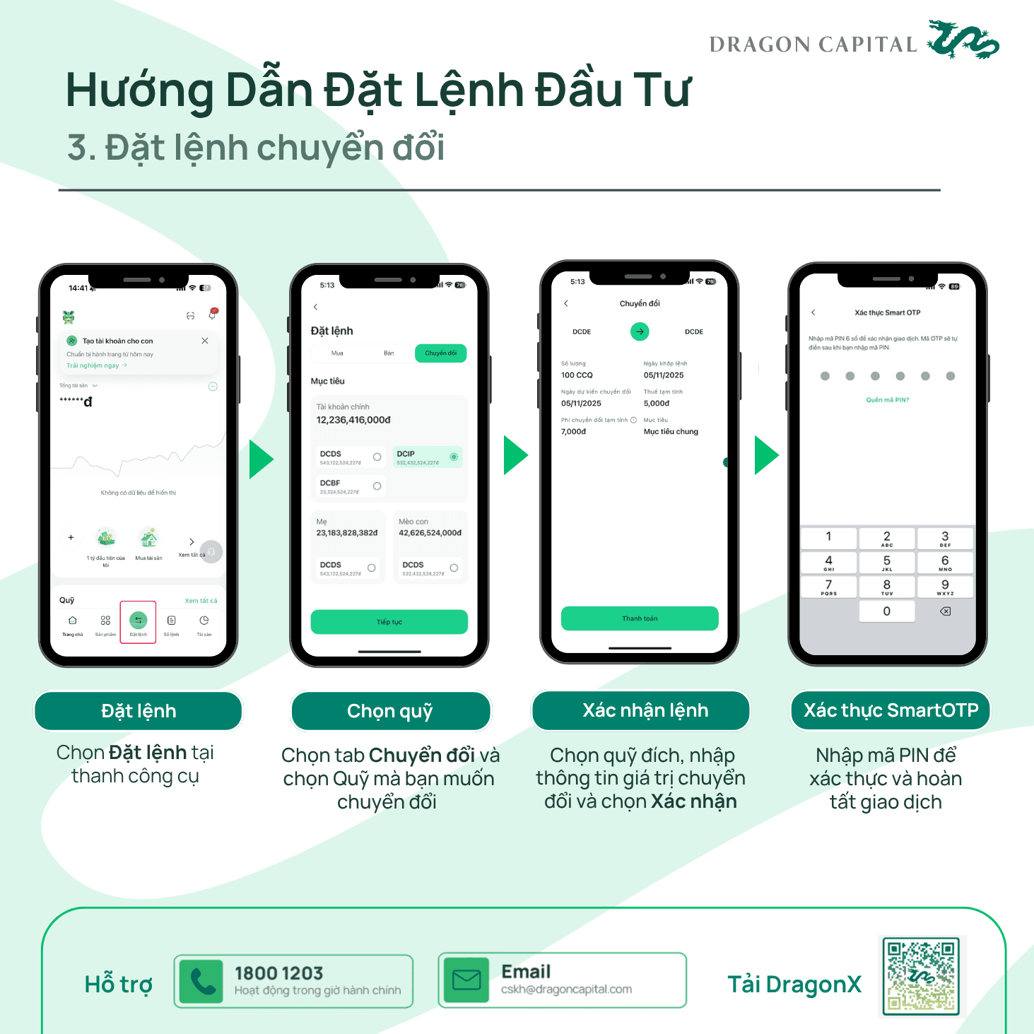 Hướng dẫn đặt lệnh đầu tư trên DragonX 2.0: Mua, Bán, Chuyển đổi chứng chỉ quỹ (2026)