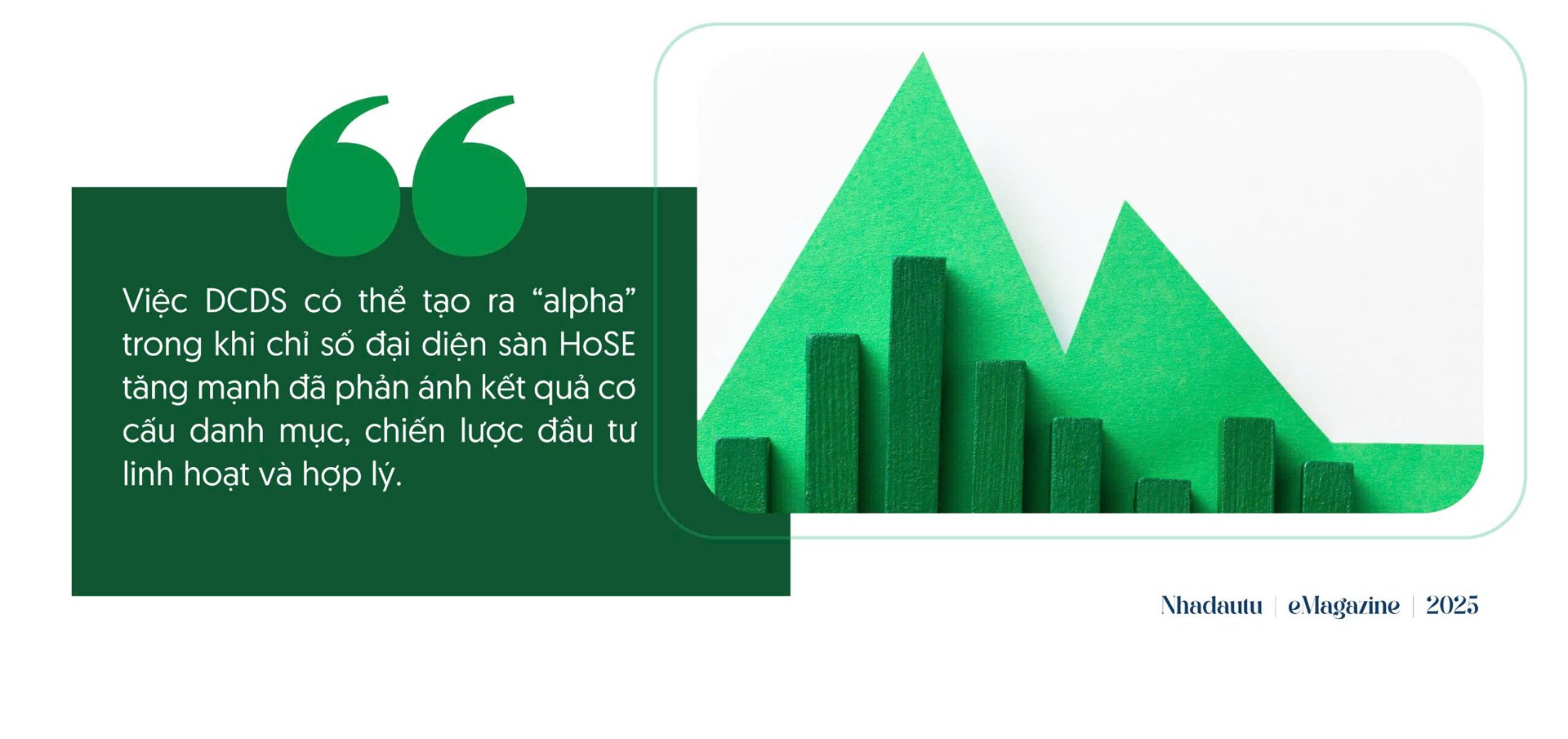 Việc DCDS có thể tạo ra “alpha” trong khi chỉ số đại diện sàn HoSE tăng mạnh đã phản ánh kết quả cơ cấu danh mục, chiến lược đầu tư linh hoạt và hợp lý.